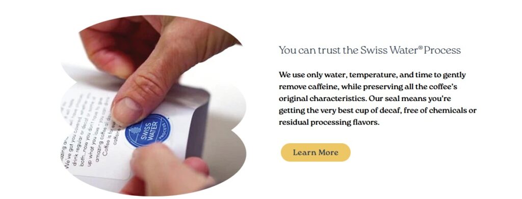- Proceso suizo al agua (Swiss Water Process): se basa en la solubilidad de la cafeína en agua y el uso de filtros de carbono. No utiliza productos químicos y mantiene el perfil de sabor original del grano. Mas información.