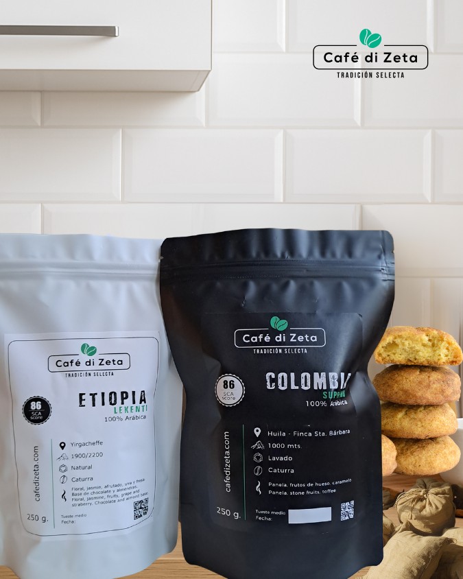 Incluye dos cafés de especialidad de 250 g, seleccionados por su equilibrio, aroma y sabor.